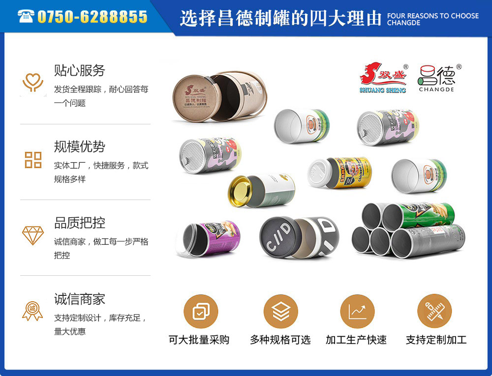 江門市昌德五金制罐有限公司位于江門與珠海臨近的古井鎮(zhèn),是專業(yè)生產(chǎn)紙罐,食品紙罐系列的包裝研制、開發(fā)、生產(chǎn)的廠家,從建廠至今,公司本著“重合同、守信用”的原則,以“質(zhì)量求生存,客戶至上”為經(jīng)營宗旨,贏得了很好的信譽,公司擁有國內(nèi)一流的技術(shù)設(shè)備和多年的生產(chǎn)經(jīng)驗。年產(chǎn)休閑食品紙筒500萬左右,紙筒2000萬支左右,易拉罐,食品罐等1000萬左右,產(chǎn)品銷往各地。我廠是以高科技為先導(dǎo),以技術(shù)創(chuàng)新整合為手段,成為迅速崛起的專業(yè)性包裝企業(yè),憑借艱苦的創(chuàng)業(yè)精神和集體智慧,采用規(guī)范的現(xiàn)代企業(yè)運行機制,形成具有鮮明特色的企業(yè)文化模式和管理...